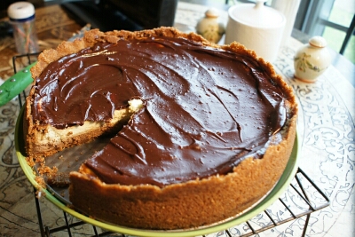 Chocolate-Glazed Triple-Layered Cheesecake