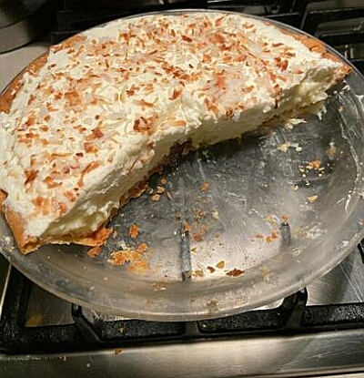 Remove from heat; stir in butter, 1/2 cup coconut,