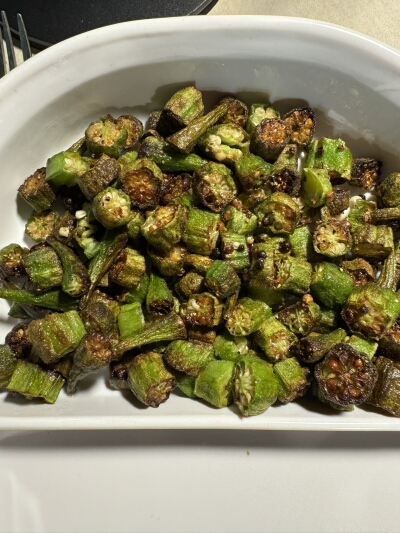There is no fancy recipe for frying this okra! Use however much okra you want to, and cook in the appropriate sized pan. Slice the okra, then put in pan with oil. You can use your oil of choice. I use olive oil for almost everything, but vegetable, canola or avocado oil will do. You can also fry in lard, if you desire. Cook and stir the okra over medium-high heat until it becomes tender and starts to char. Stir frequently to avoid burning. I always put salt and pepper on the okra after it is cooked, but you can also put it on while it is cooking, if you desire. I have never put vinegar on the okra, which is supposed to minimize the slime. I have never had a slime problem with the okra cooked this way. Enjoy! |